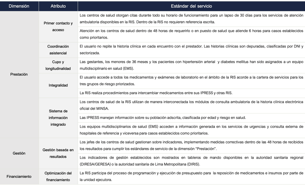 Tabla 1. Estándares de servicio 2021-2022 para población priorizada en una RIS