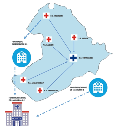 El proyecto de inversión permitirá la articulación funcional de los establecimientos de salud respecto al centro de salud I-3 Cortegana, al cual confluyen por ser el que tiene la mayor capacidad resolutiva bajo un enfoque de red integrada de salud.
